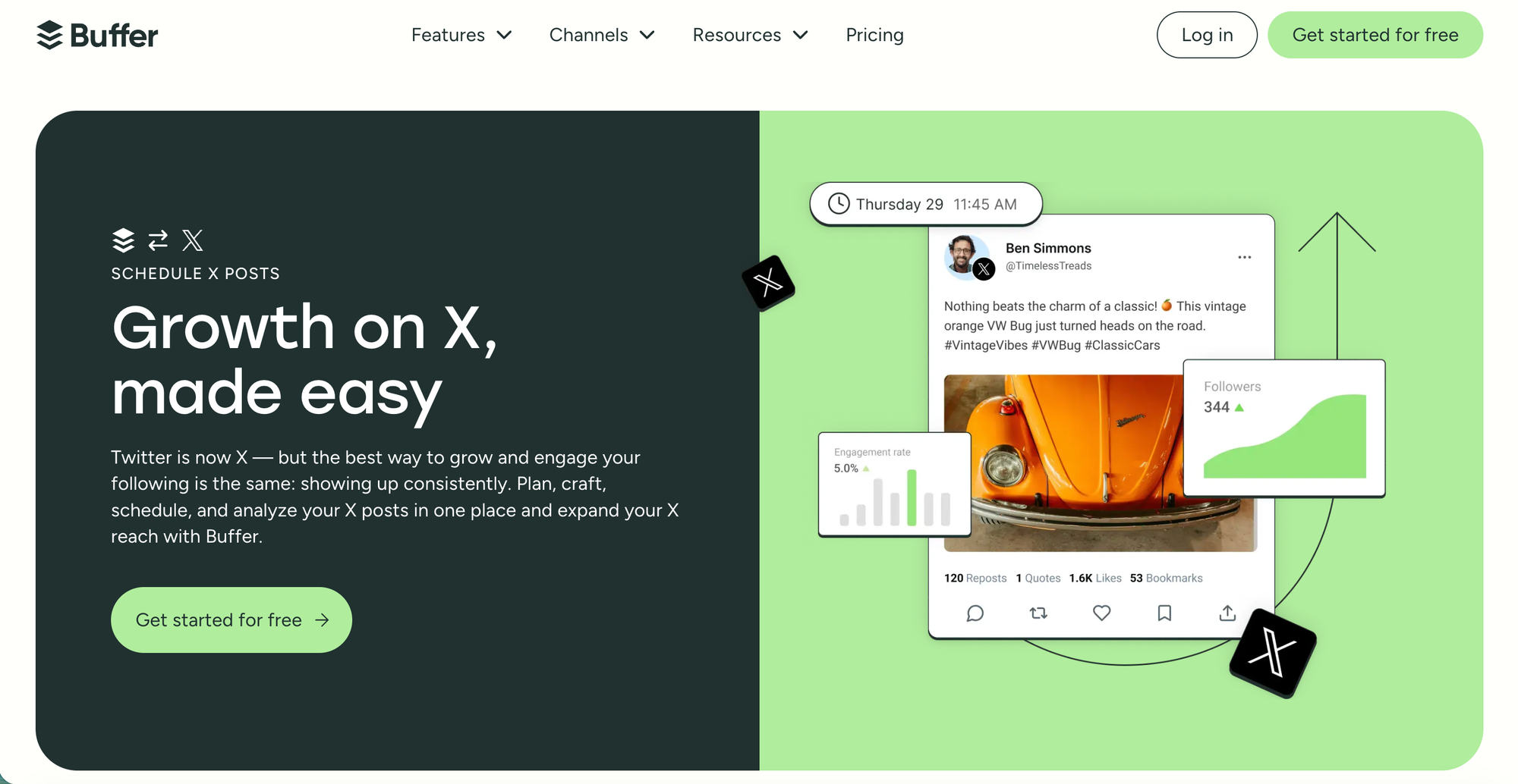 | Buffer | Simple & Clean Scheduling | Intuitive queue-based publishing | $5/month per channel |