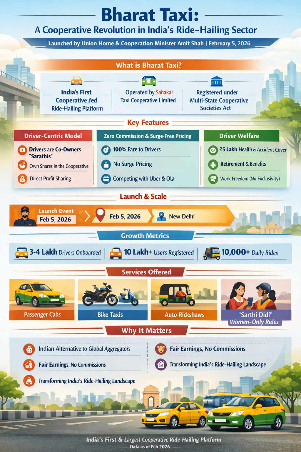 Union Home and Cooperation Minister Amit Shah officially launched Bharat Taxi on Thursday, February 5, 2026, marking a significant shift in India's burgeoning ride-hailing industry. Positioned as the nation's first cooperative-based platform, Bharat Taxi aims to empower drivers by transforming them into co-owners, thereby challenging the conventional gig-economy model prevalent among existing aggregators.