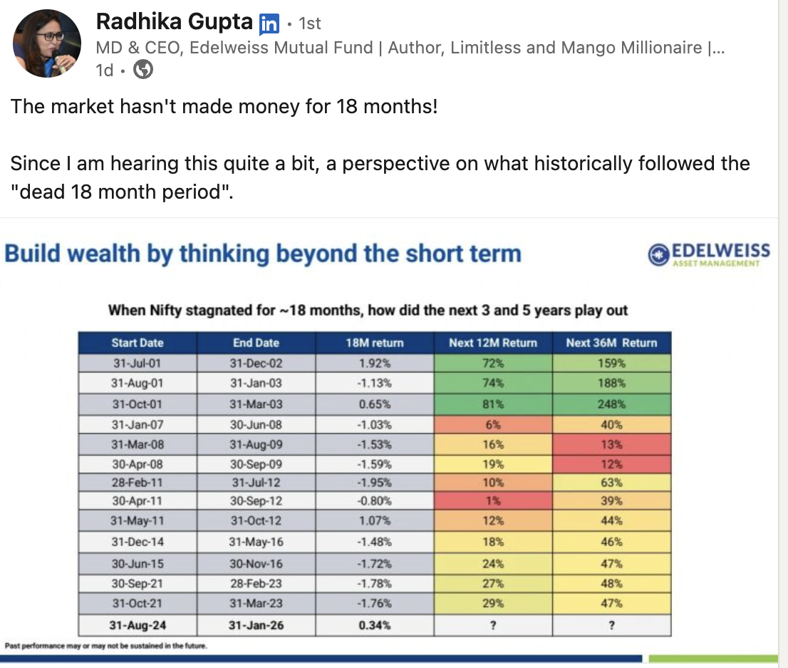 For many investors, the past 18 months have felt like a financial purgatory. The market, a once-reliable engine of growth, appears to have stalled, leaving many to wonder: Is this the new normal, or simply the calm before a storm? A recent LinkedIn post by prominent financial voice Radhika Gupta ignited a fervent debate, cutting through the noise to offer a historical perspective that challenges conventional anxieties.