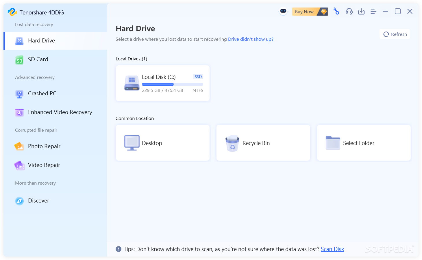 Tenorshare 4DDiG Free is a versatile data recovery software available for both Windows and macOS. It allows you to recover lost, deleted, or formatted files from a wide range of storage devices such as SSDs, USB drives, memory cards, and other external storage media. The intuitive interface of this software makes it beginner-friendly, while advanced functions like deep scan and file preview ensure accurate recovery of important files.